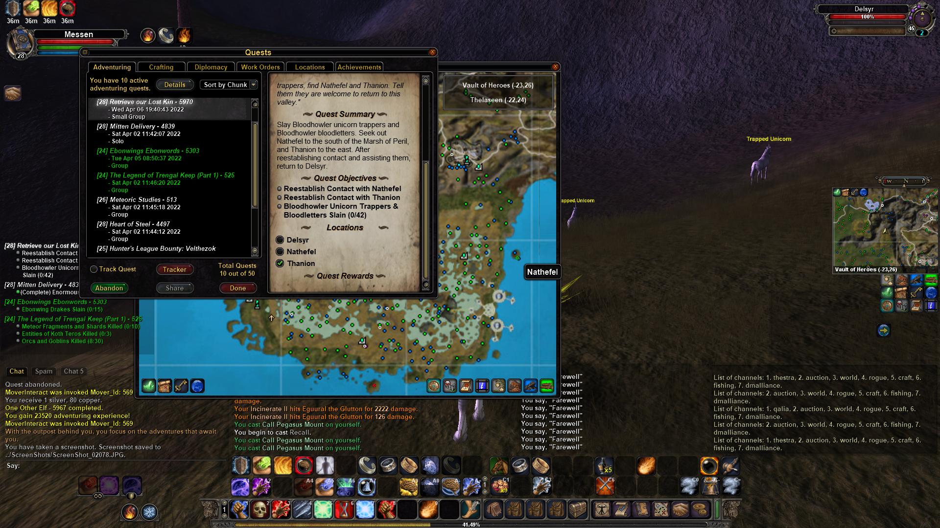 Both the Quest text and the Quest summary give the locations of the Unicorns you need to go see as Nathefel to the South and Thanion to the East, but their actual locations are actually the opposite. Nathefel is on the island to the East of Thelaseen and Thanion is on the island South of the Marsh.
