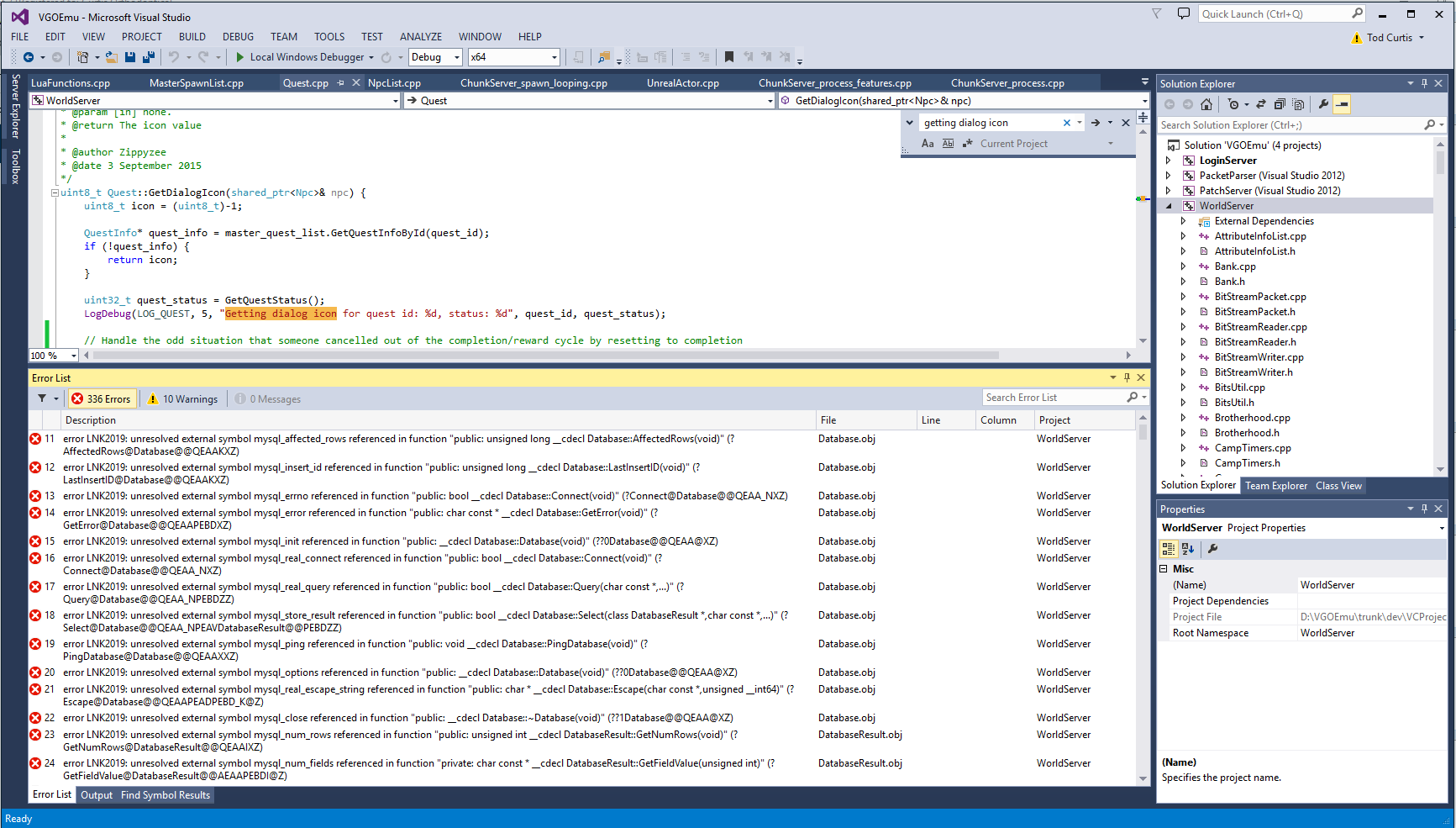 Actually, I guess that was only building LoginServer. When I try to build WorldServer, I get this: