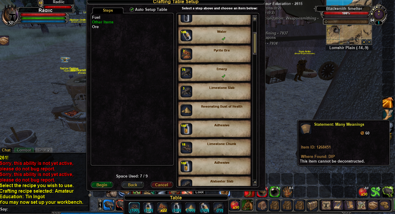 I was working through the amateur blacksmithing quests and found a visual bug on the crafting table. I will attach a screenshot I took of it. I have seen it multiple times and it seems like it is always the 4th slot on the crafting table. I checked it on the default UI and on CoreUI3 and it was the same for both.