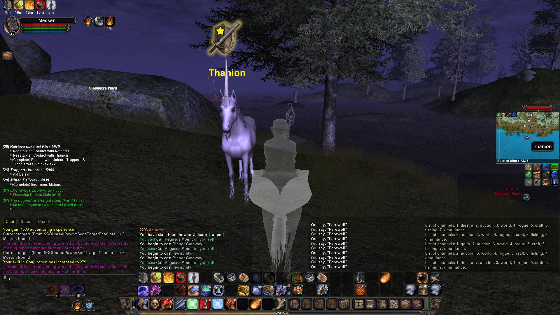 Both the Quest text and the Quest summary give the locations of the Unicorns you need to go see as Nathefel to the South and Thanion to the East, but their actual locations are actually the opposite. Nathefel is on the island to the East of Thelaseen and Thanion is on the island South of the Marsh.