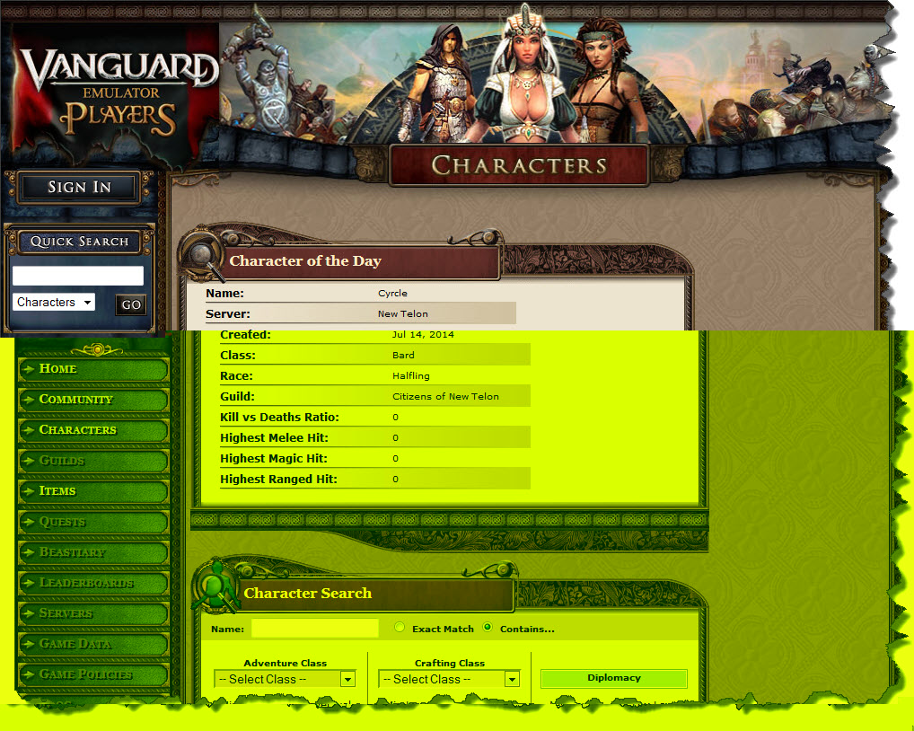 I have missed this website! I remember poking around on it often to see what friends have been doing and their in-game progress.